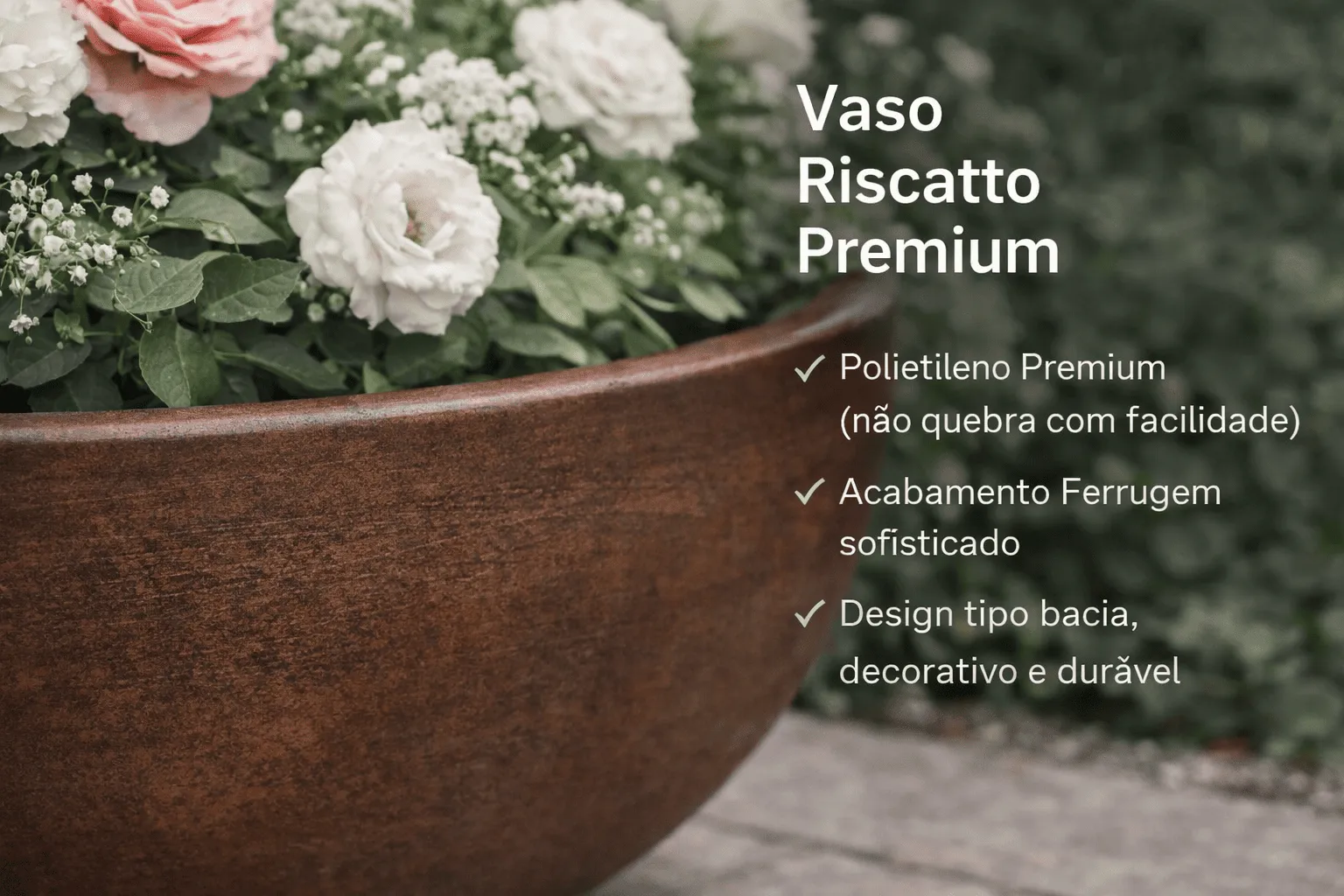 Vaso Bacia Decorativa Riscatto Grande Ferrugem 50 cm em Polietileno Premium | Loplast