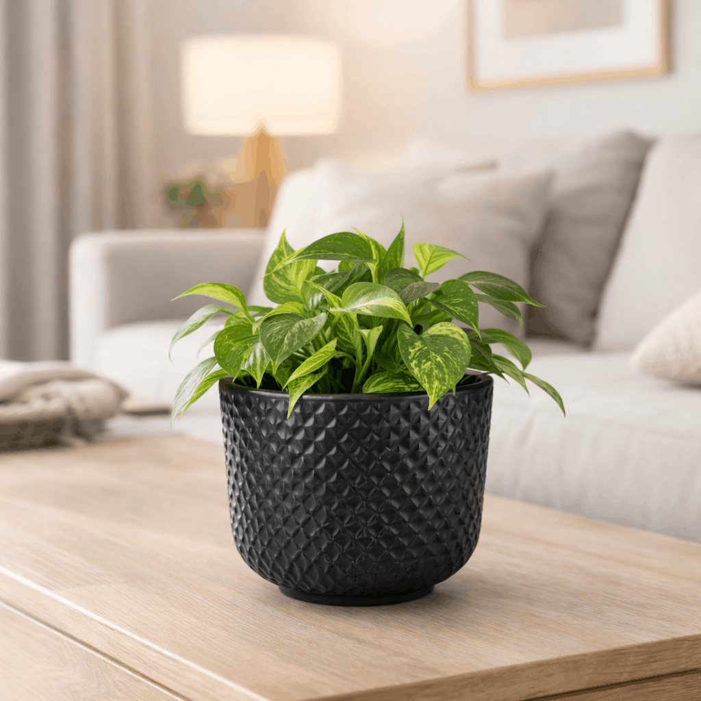 Vaso Beta Mini Preto Carvão em Polietileno 15cm Decorativo Premium | Loplast