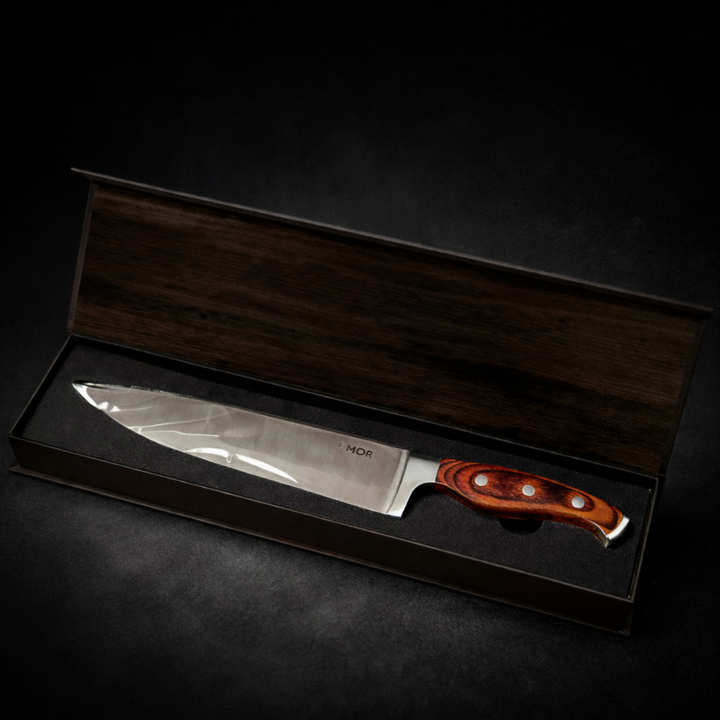 Faca Chef 8 Polegadas MOR Steel Aço Inox Cabo Madeira Faca Profissional de Cozinha Ultra Afiada