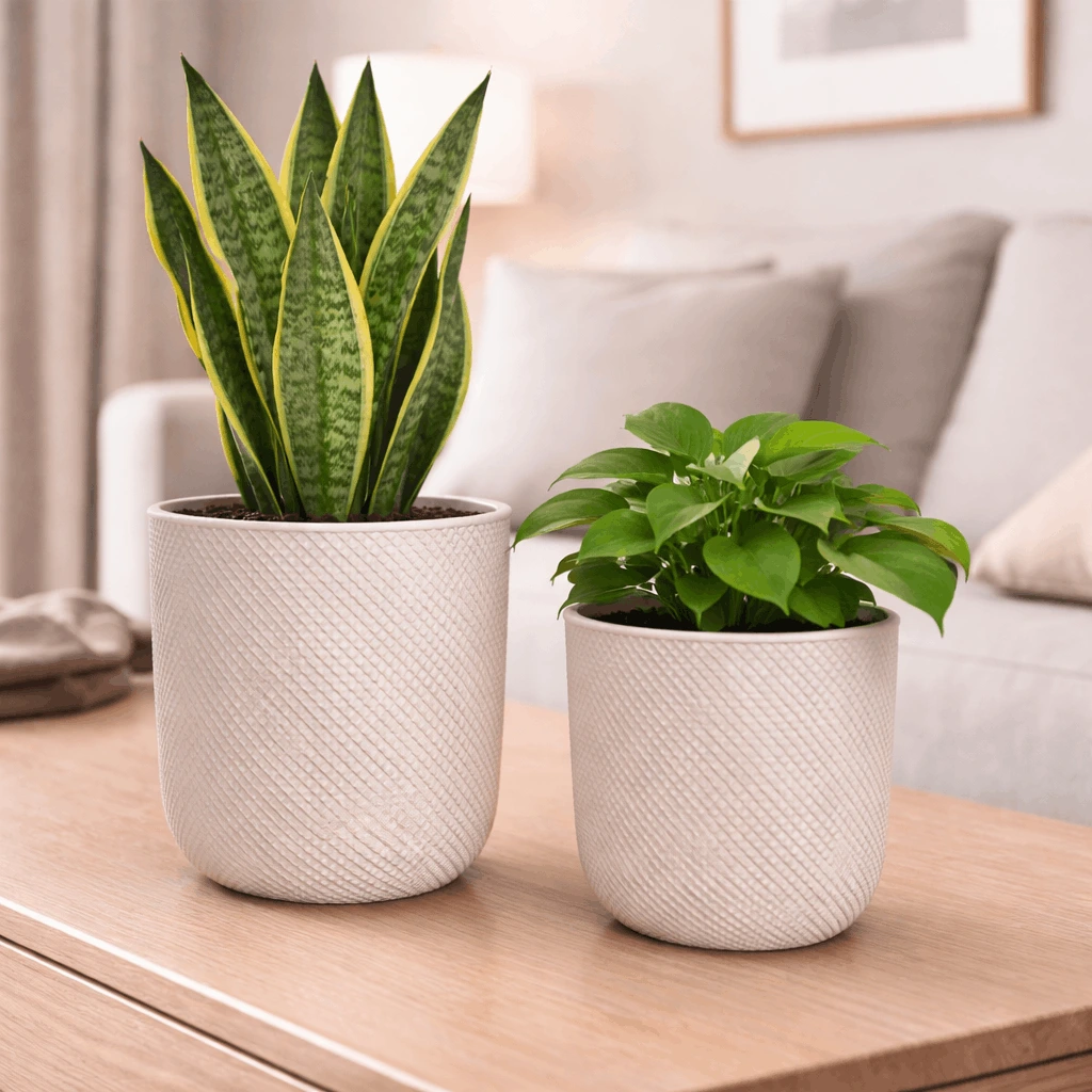 Kit 2 Vasos Vite Calcário em Polietileno Premium Decorativo para Sala Jardim Eventos