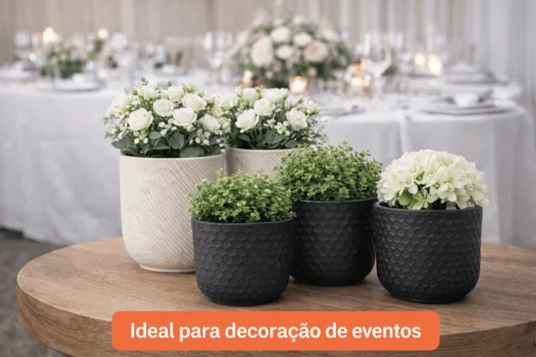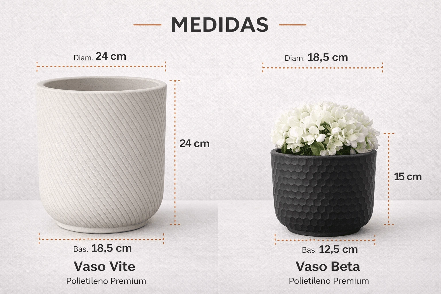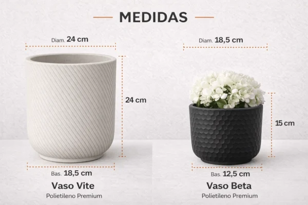 Fabricados em polietileno resistente, os vasos oferecem alta durabilidade, leveza e excelente acabamento, sendo indicados para plantas naturais ou artificiais. O design contemporâneo permite composições decorativas variadas, desde propostas minimalistas até ambientes mais sofisticados.