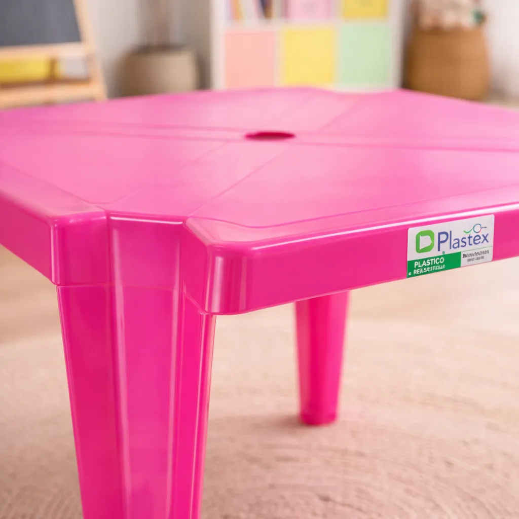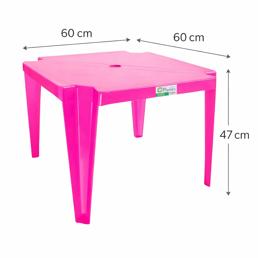 Mesa Plástica Plastex Infantil Rosa 60×60 Perfeita para Brincar e Estudar