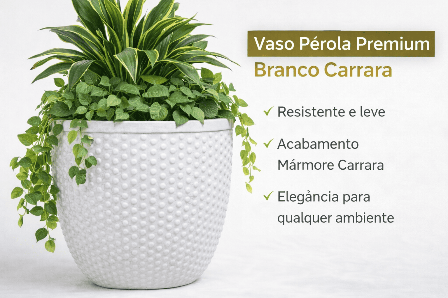 ✨ Vaso Pérola Branco Carrara – Elegância Premium